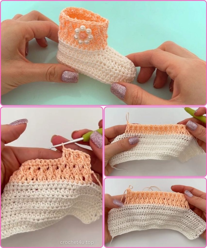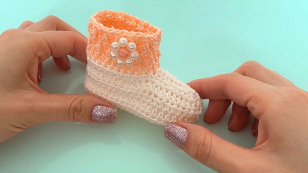 Repeat all steps for the second bootie. Enjoy your beautifully textured, handcrafted baby shoes!