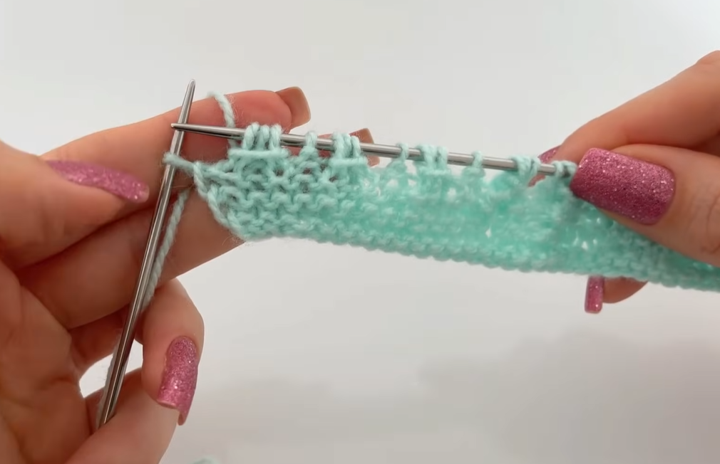 - Sl1wyf, K to the last st, K last st. (All stitches are knit to create a garter ridge).(49 sts)