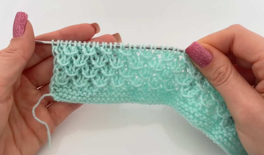 Row 10: Sl1wyf, p1, k1, p1, k1; repeat from * to last st, K last st. (Row 4 of Scale Stitch pattern)