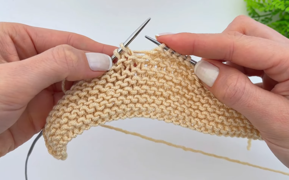 - Repeat Row 2 until you have completed a total of 7 rows (creating 3 full ridges).
