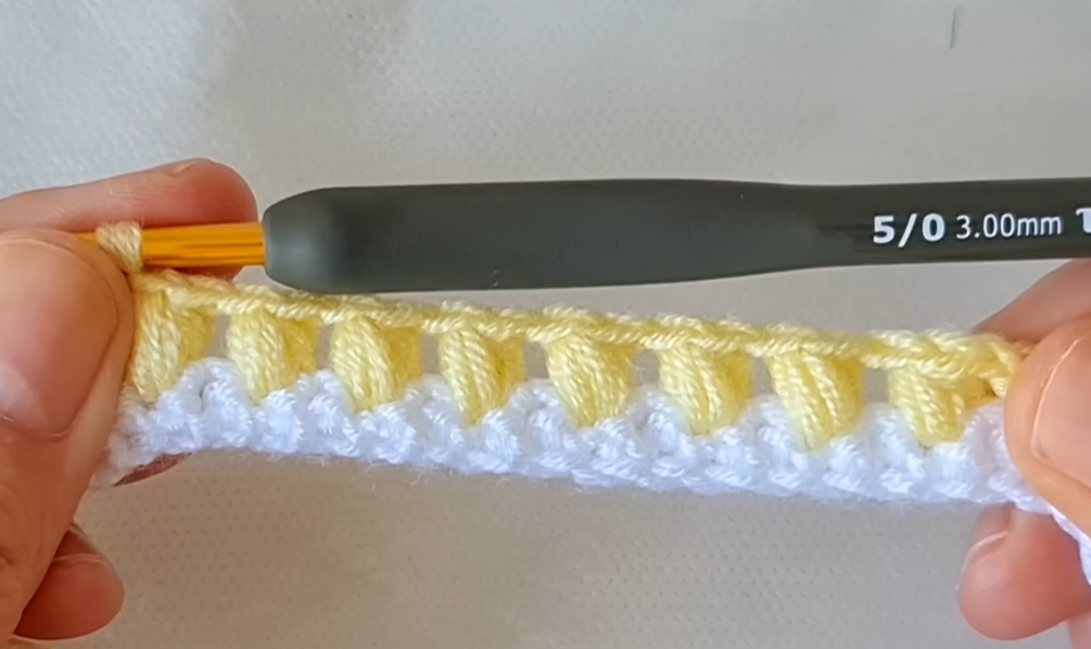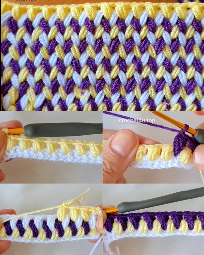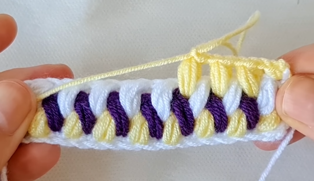 ⚠️ Important Note on Color Changes: You will be carrying the non-working colors up the side of your work. Since this is a very dense stitch, the carried yarn will likely be covered by the natural thickness and texture of the fabric, but always keep your floats loose so they don’t pucker the edge.